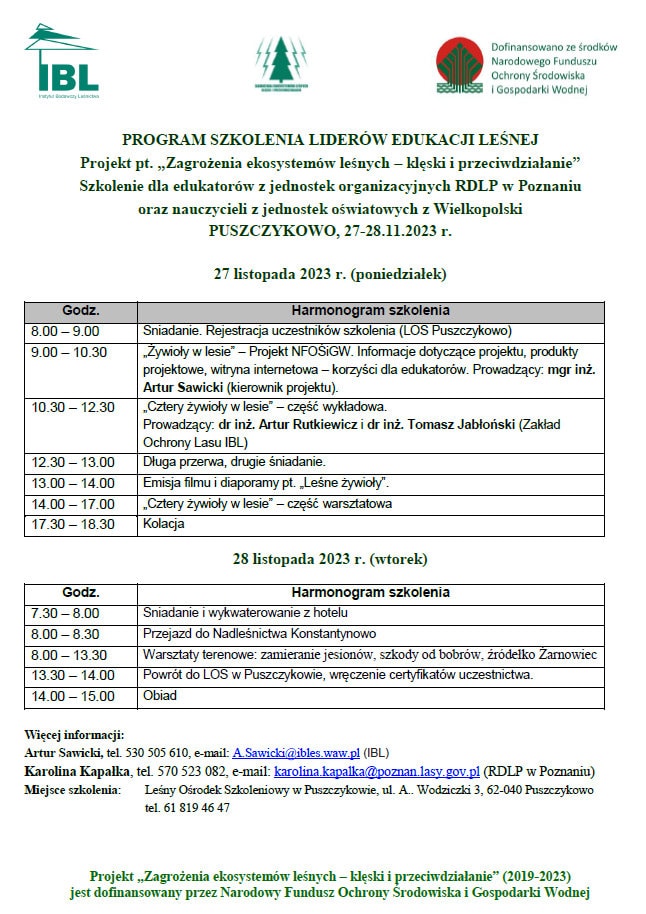 Do końca października br., podczas 16 szkoleń edukatorzy z Instytut Badawczy Leśnictwa przeszkolili ponad 650 osób. Do końca realizacji Projektu w planie mamy już tylko dwa szkolenia – są jeszcze wolne miejsca!